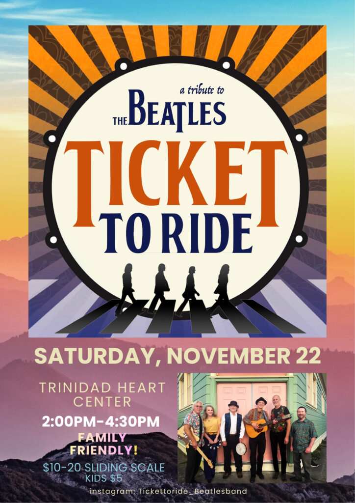 Come enjoy a special live performance by Ticket to Ride, an incredible Beatles tribute band!Join us at Trinidad Heart Center on Saturday, November 22, 2025, from